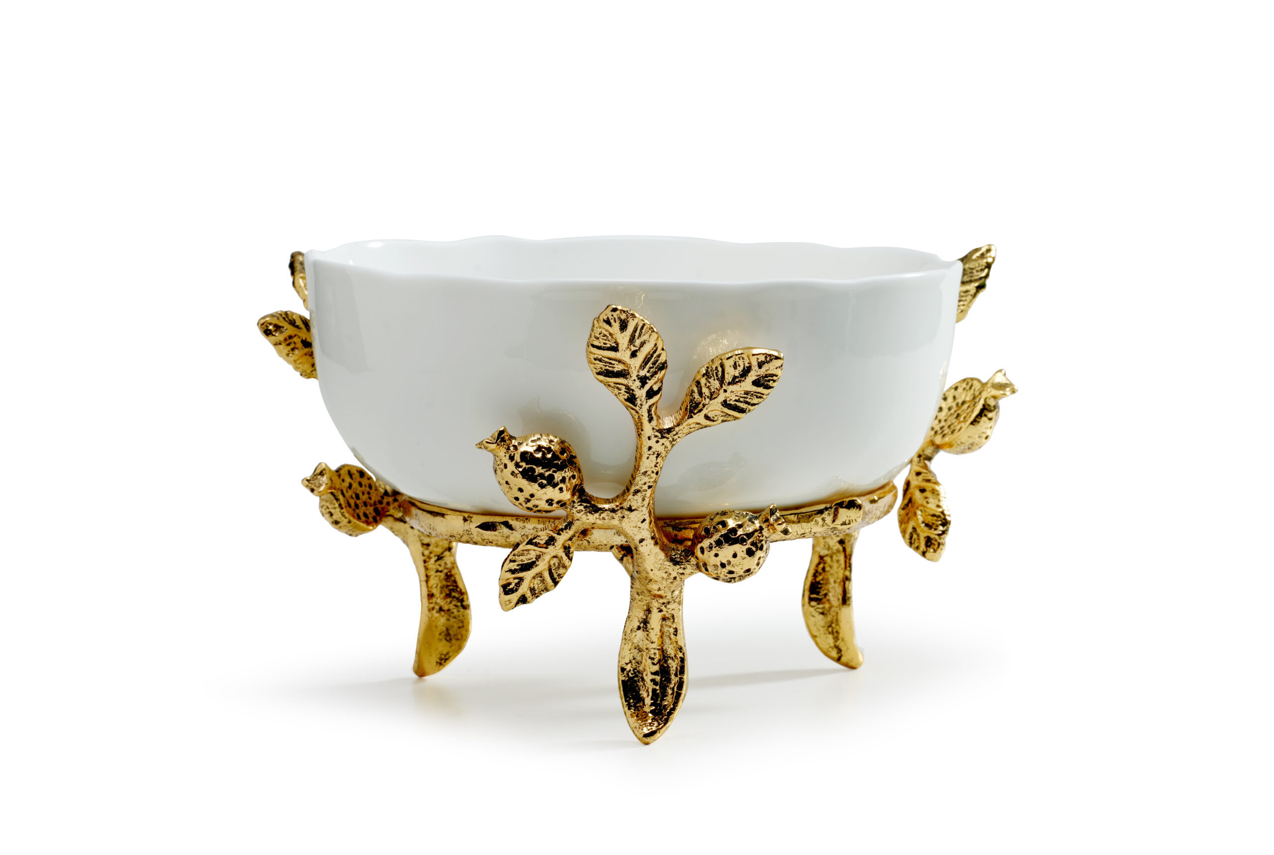 Блюдо сервировочное 18см. Декор: гранат. Материал: костяной фарфор, цинковый сплав. Цвет: золотой