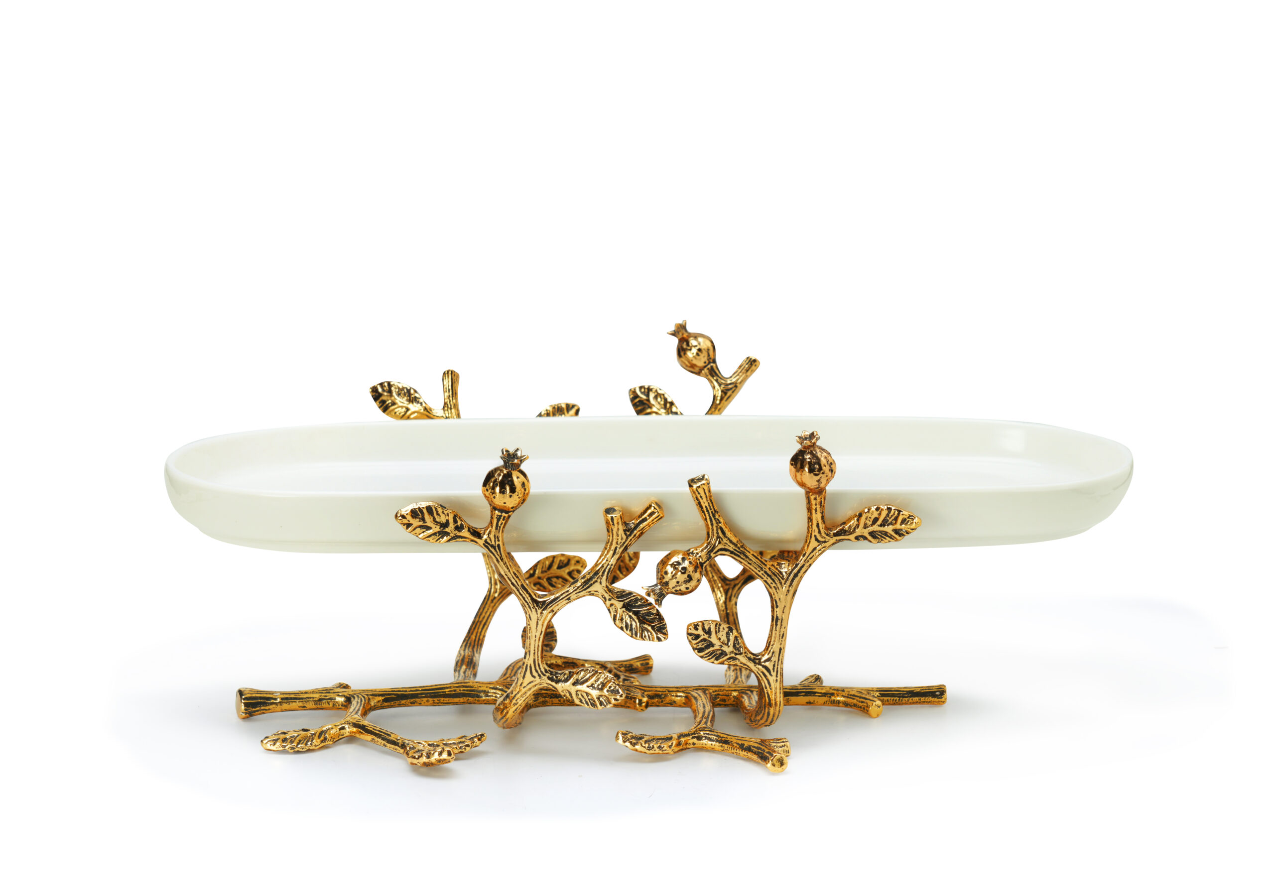 Блюдо сервировочное 41,5х15х30см. Декор: гранат. Материал: керамика, сталь, цинковый сплав. Цвет: золотой