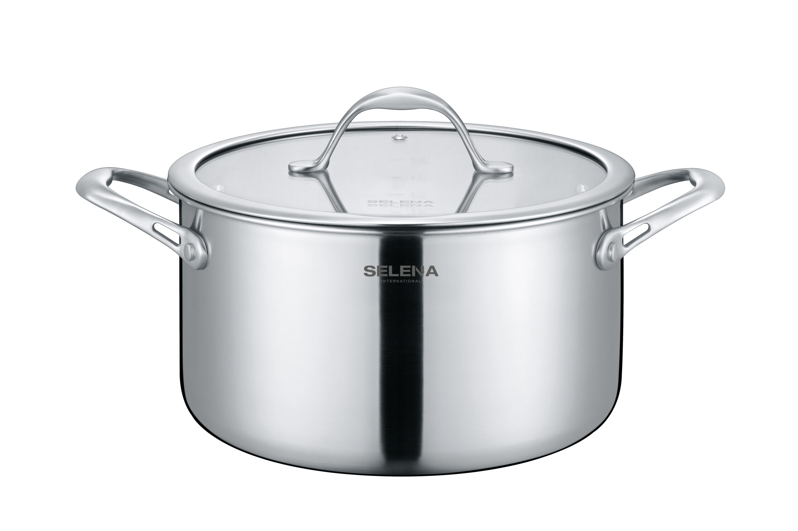 Кастрюля 24х13,5см/6л со стеклянной крышкой. Трехслойный корпус, толщина 2,5мм, литое индукционное дно. Материал: нержавеющая сталь 18/10, стекло. Полирование: зеркальное.