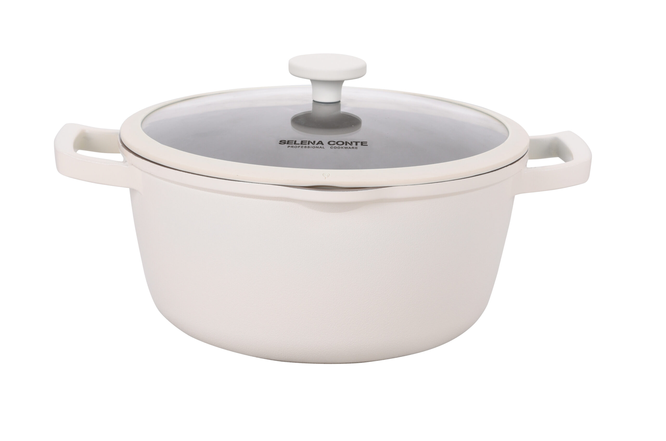 Кастрюля 24х12см/4,5л со стеклянной крышкой. Материал: литой алюминий. Премиальное керамическое покрытие Rhitz. Индукционное дно. Цвет: бежевый