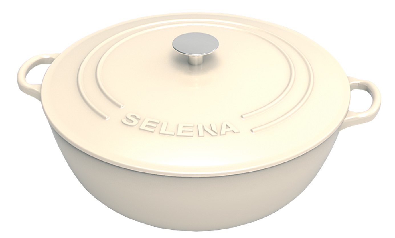 Кастрюля 32,5х12,3см/7л из чугуна с эмалированным покрытием, с крышкой. Материал ручки: нержавеющая сталь. Цвет: бежевый