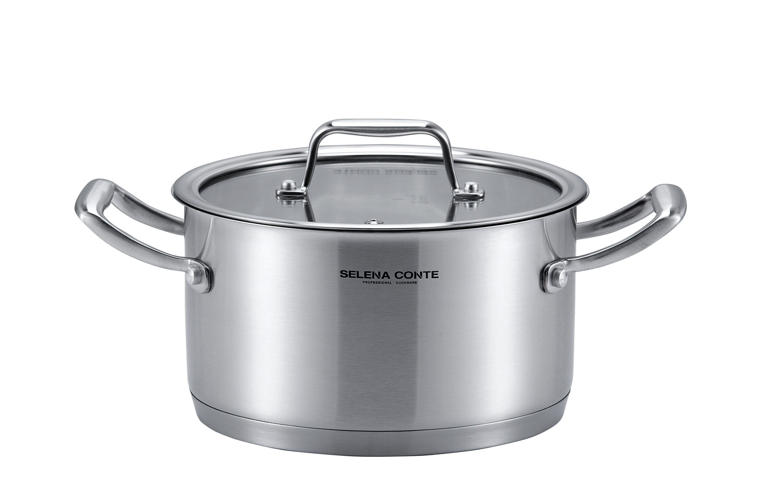 Кастрюля 20х11см/3,3л со стеклянной крышкой. Индукционное капсульное дно. Материал: нержавеющая сталь 18/10. Толщина: 0,6мм. Полирование: матовое.