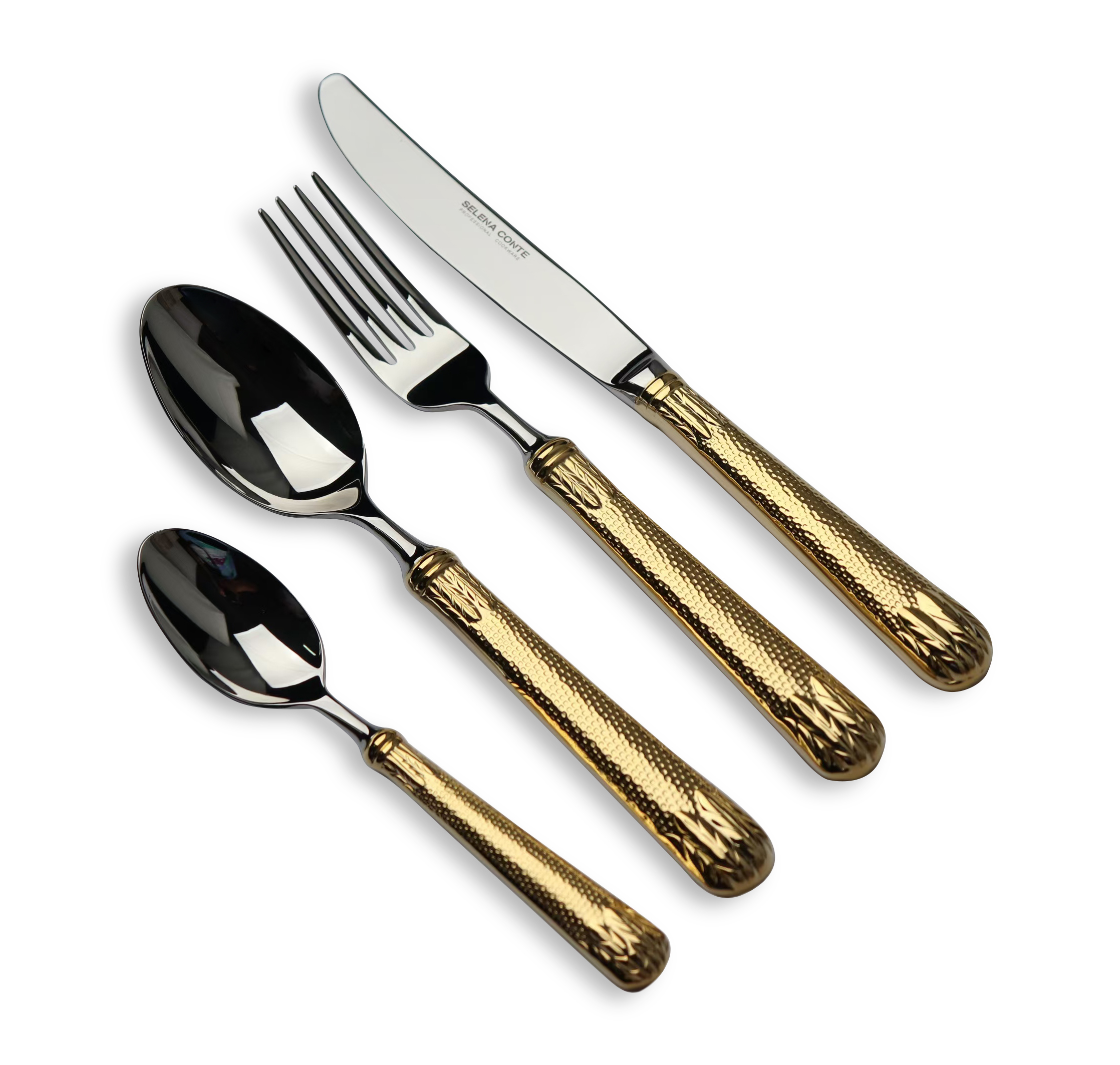 Набор столовых приборов из 24 предметов на 6 персон. Материал приборов: нержавеющая сталь 18/10. Цвет: сталь, золото