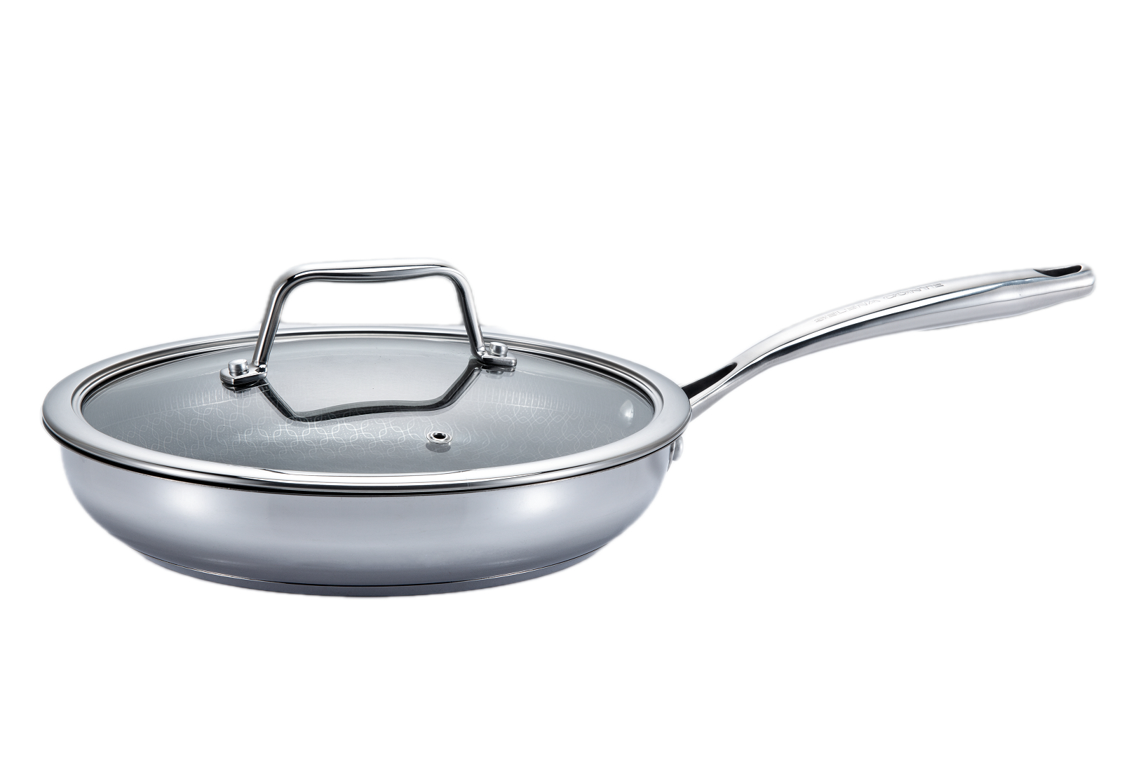 Сковорода 24х4,5см со стеклянной крышкой. Индукционное капсульное дно. Премиальное антипригарное керамическое покрытие Weilburger. Материал: нержавеющая сталь 18/10, стекло. Толщина: 0,8мм. Полирование: зеркальное