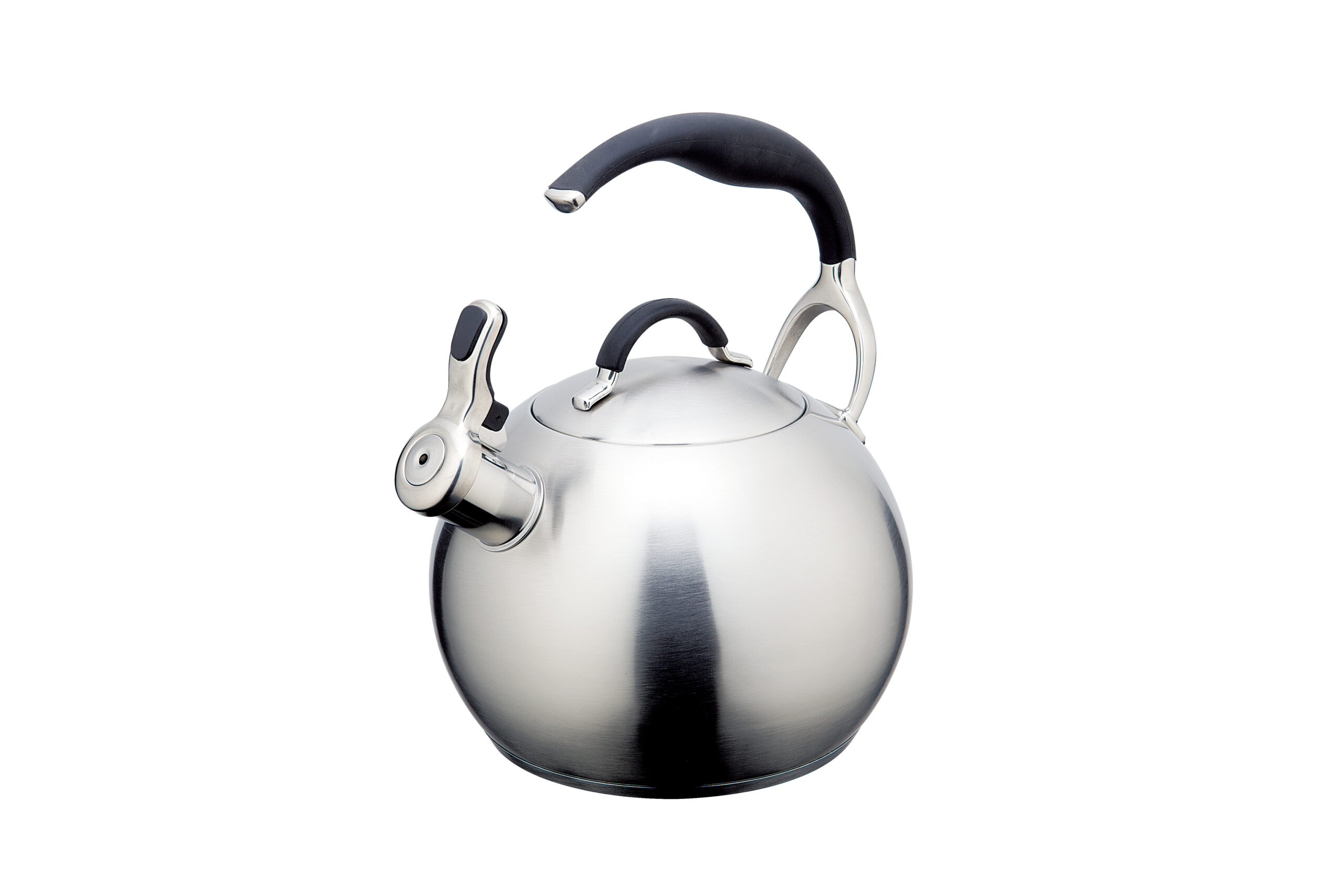 Чайник для кипячения воды 2,4л со свистком. Индукционное капсульное дно. Материал: нержавеющая сталь 18/10, силикон. Толщина: 0,6мм. Цвет ручки: черный. Полирование: матовое