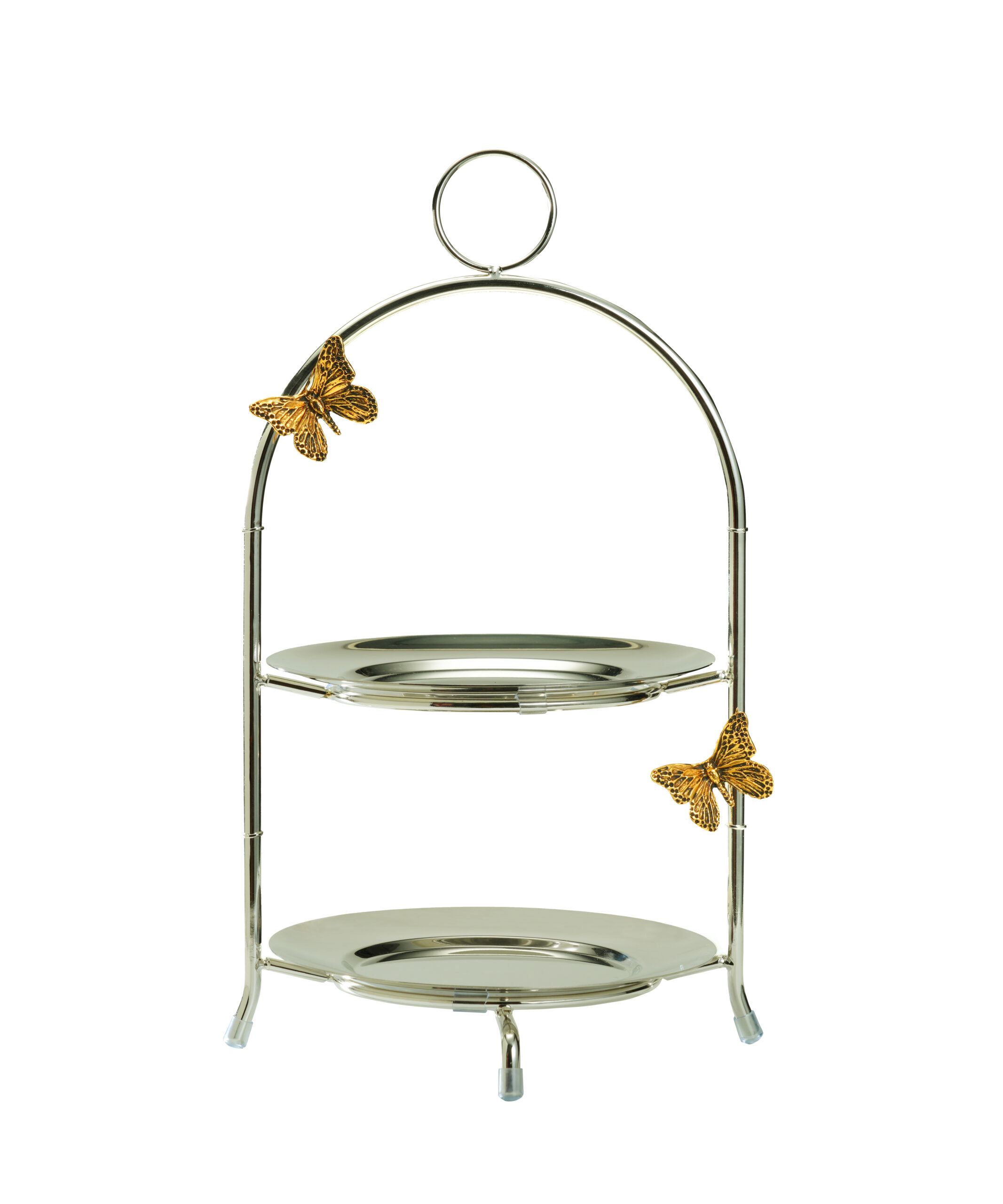 Этажерка сервировочная двухъярусная диаметр 20см, высота 40см. Декор: бабочка. Материал: сталь, цинковый сплав.